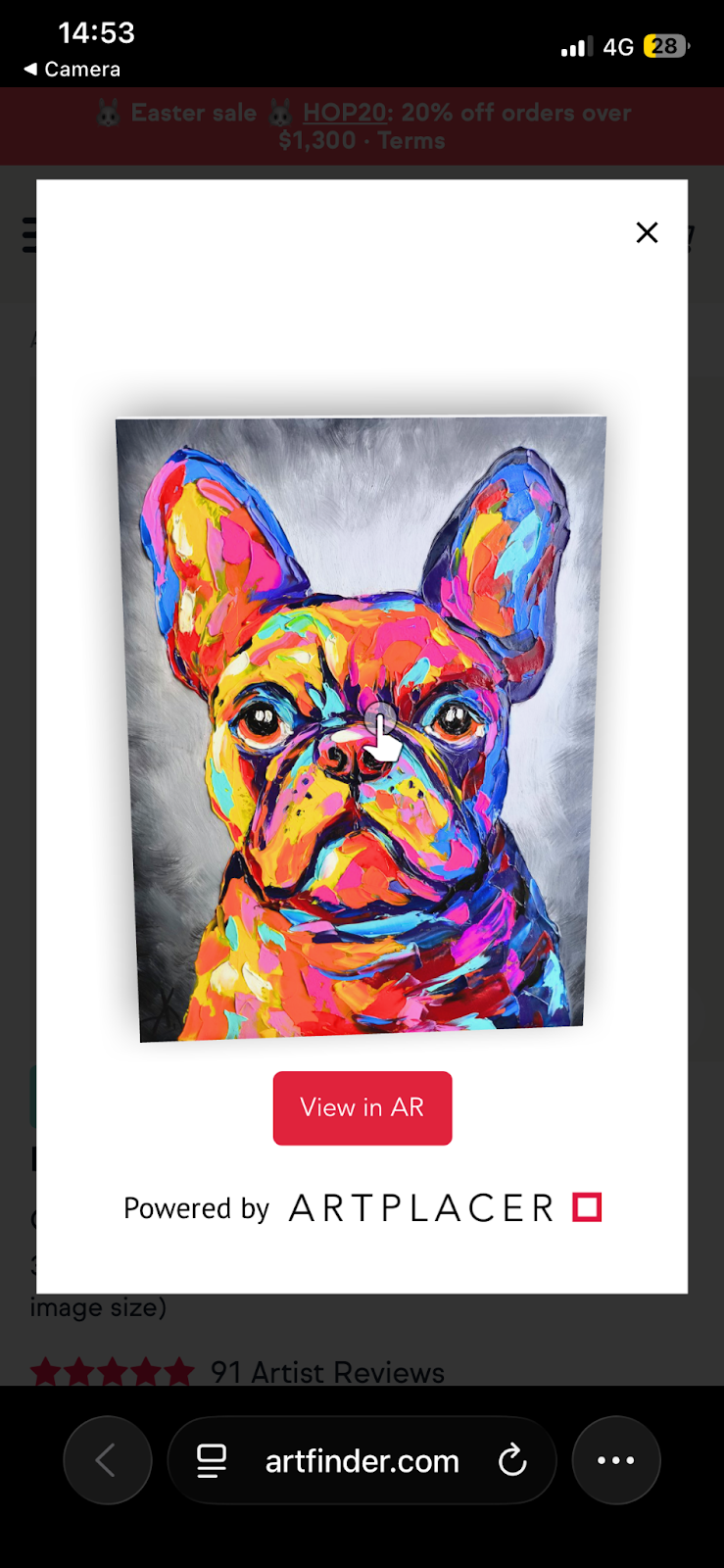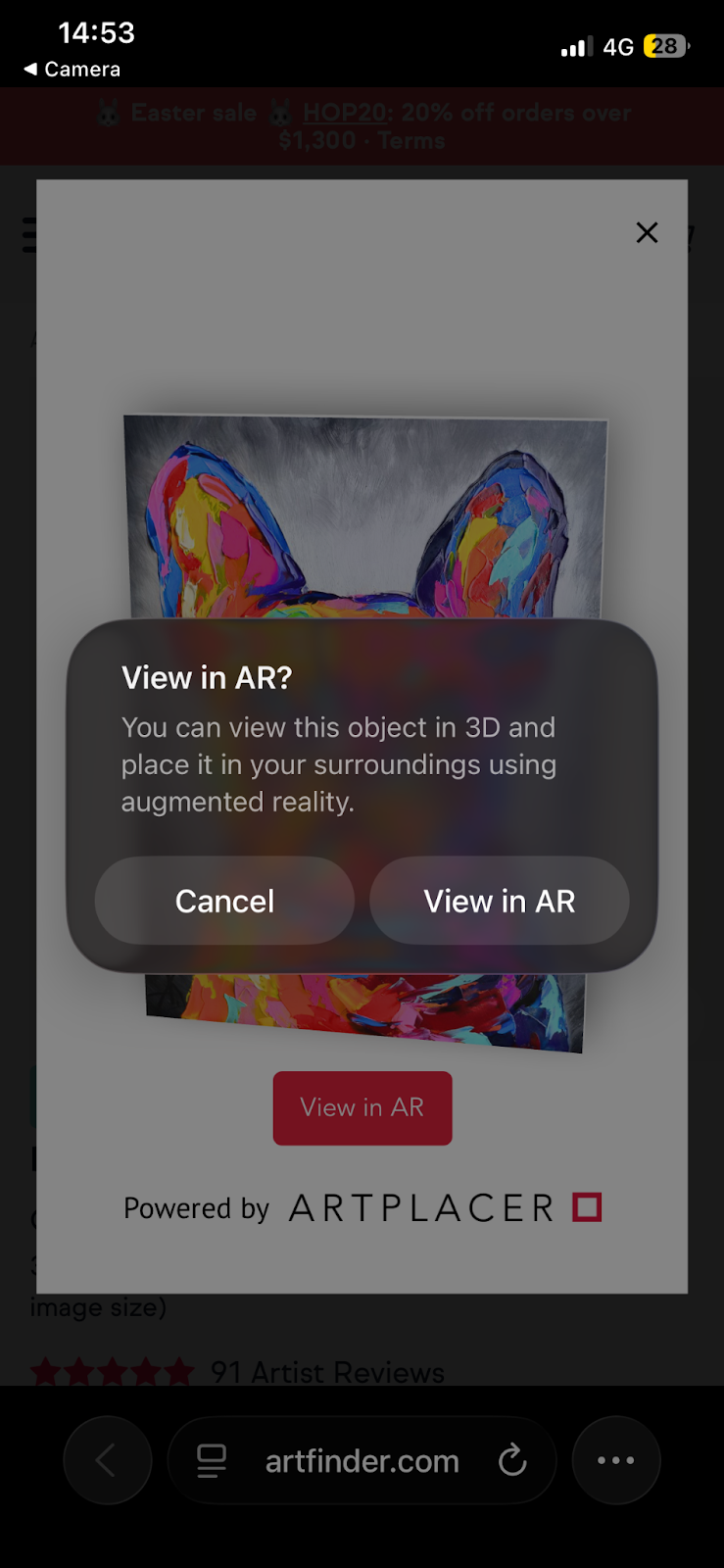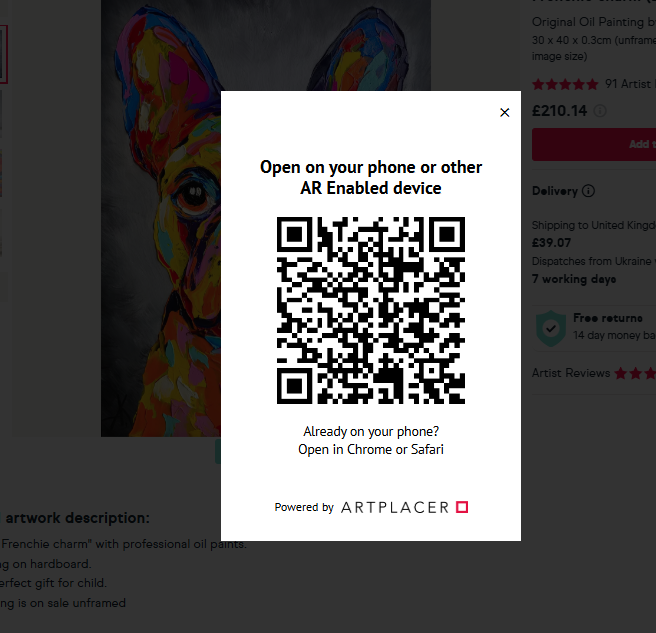 - Once you’ve scanned this QR code on your mobile device, it will then show you an image of the artwork and a button ‘View in AR’.