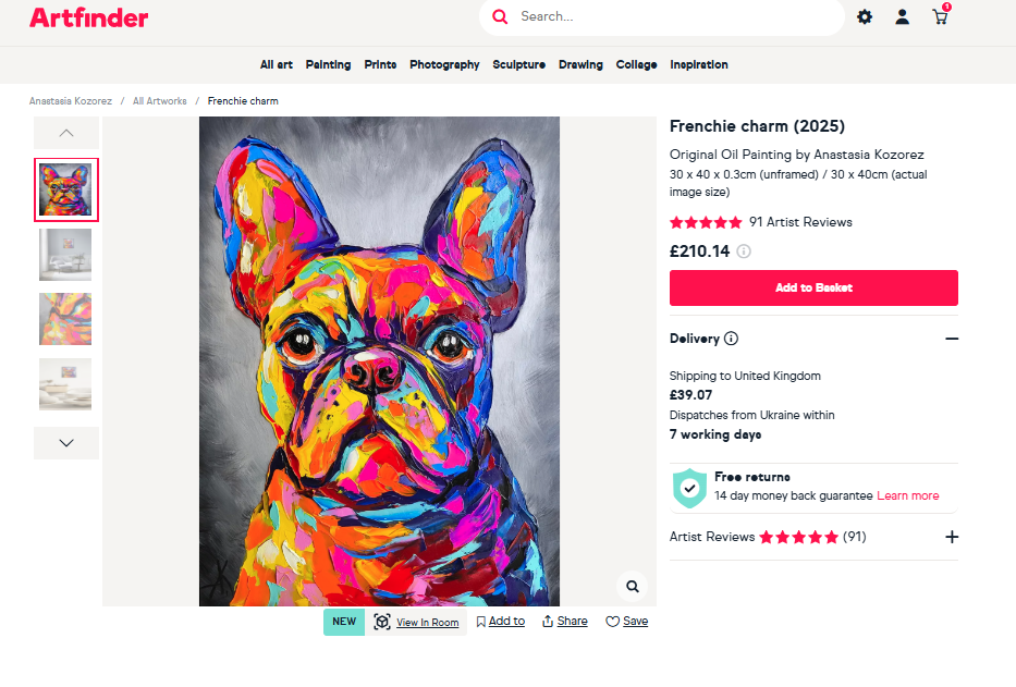 Artfinder’s new “View In Room” feature helps customers visualise artwork in a realistic setting before purchasing. Displaying pieces to scale in your room makes it much easier to judge size, proportion, and overall impact in a space. This reduces uncertainty and the risk of choosing something that feels too small or overwhelming once it arrives. It also builds confidence in buying art online, making the experience more intuitive, engaging, and closer to viewing art in your own space.