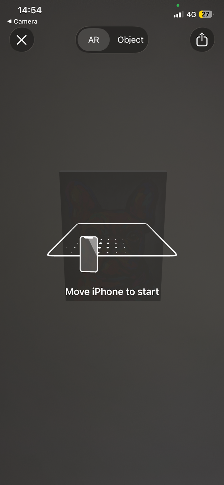 - Lastly, it will take you to the AR feature. You can view the artwork in your room and on your walls. You will have to move your phone around the room, as advised in the instructions that the AR feature will guide you through and as seen in the image below, this will allow the feature to be as realistic as possible in the room you're trying to view the artwork in.